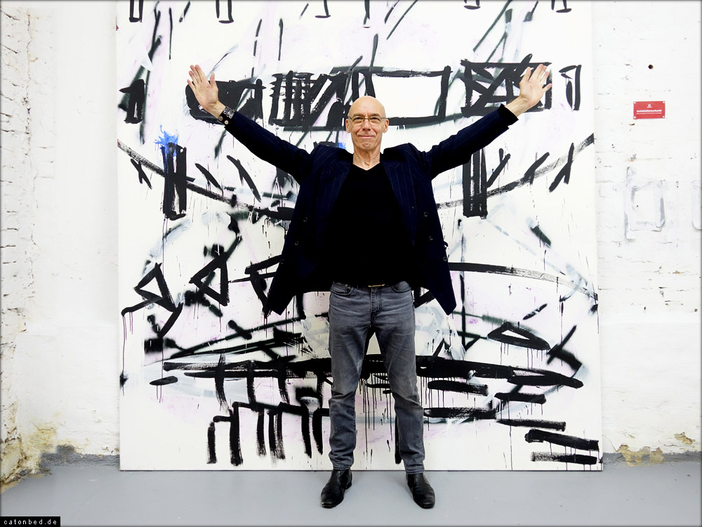 Zwei Ansatzpunkte halten dieses stilistisch disparate Werk zusammen. Der eine ist die Reflexion, die Analyse, das Denken. Überlegungen zu den kompositorischen und strukturellen Möglichkeiten treiben den Künstler mit einer gewissen Atemlosigkeit von Bild zu Bild. Überhaupt spielt die körperliche Bewegung eine große Rolle in seiner Arbeit, wie ein Tänzer – manchmal wie ein Springteufel – umkreist und gestaltet er seine Werke. Daneben steht der Ort des Denkens selbst, das Gehirn: nach diesem Organ ist eine ganze Serie benannt, Hirnströme finden ihre Form als Fäden-Gewimmel, als »energetische Ketten«. Immer wieder gerinnt das Zerebrale zu Worten und Begriffen.