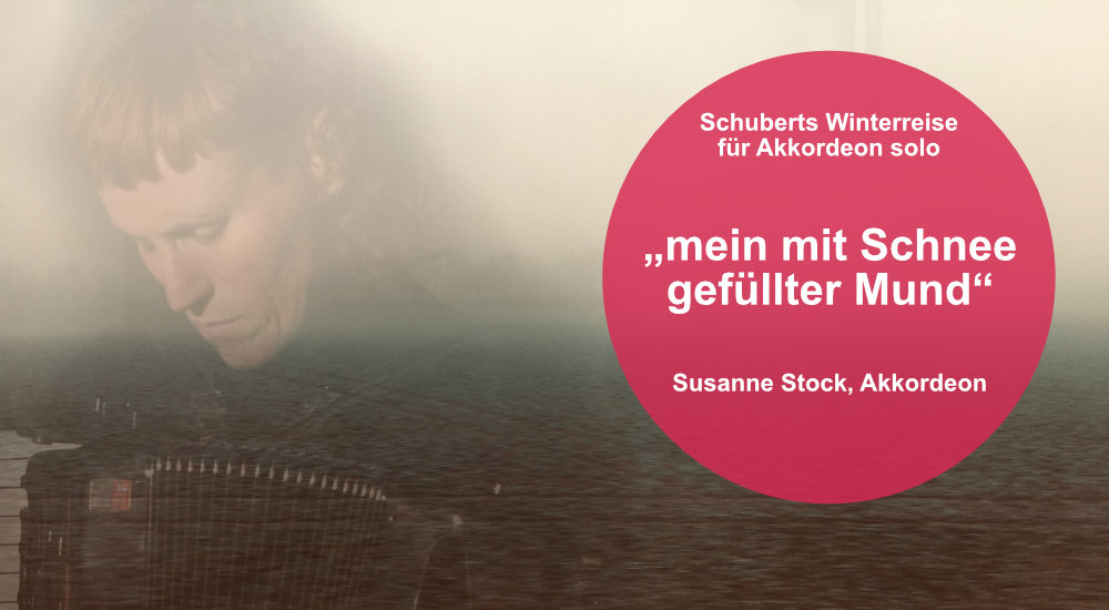 So will das Programm „mein mit Schnee gefüllter Mund“ der Akkordeonistin Susanne Stock einen anderen, vielleicht neuen Blick auf die Winterreise von Franz Schubert werfen. In veränderter Reihenfolge und mit Zwischentexten entsteht eine intime, melancholisch-nachdenkliche Athmosphäre und ein intensiver Konzertabend.